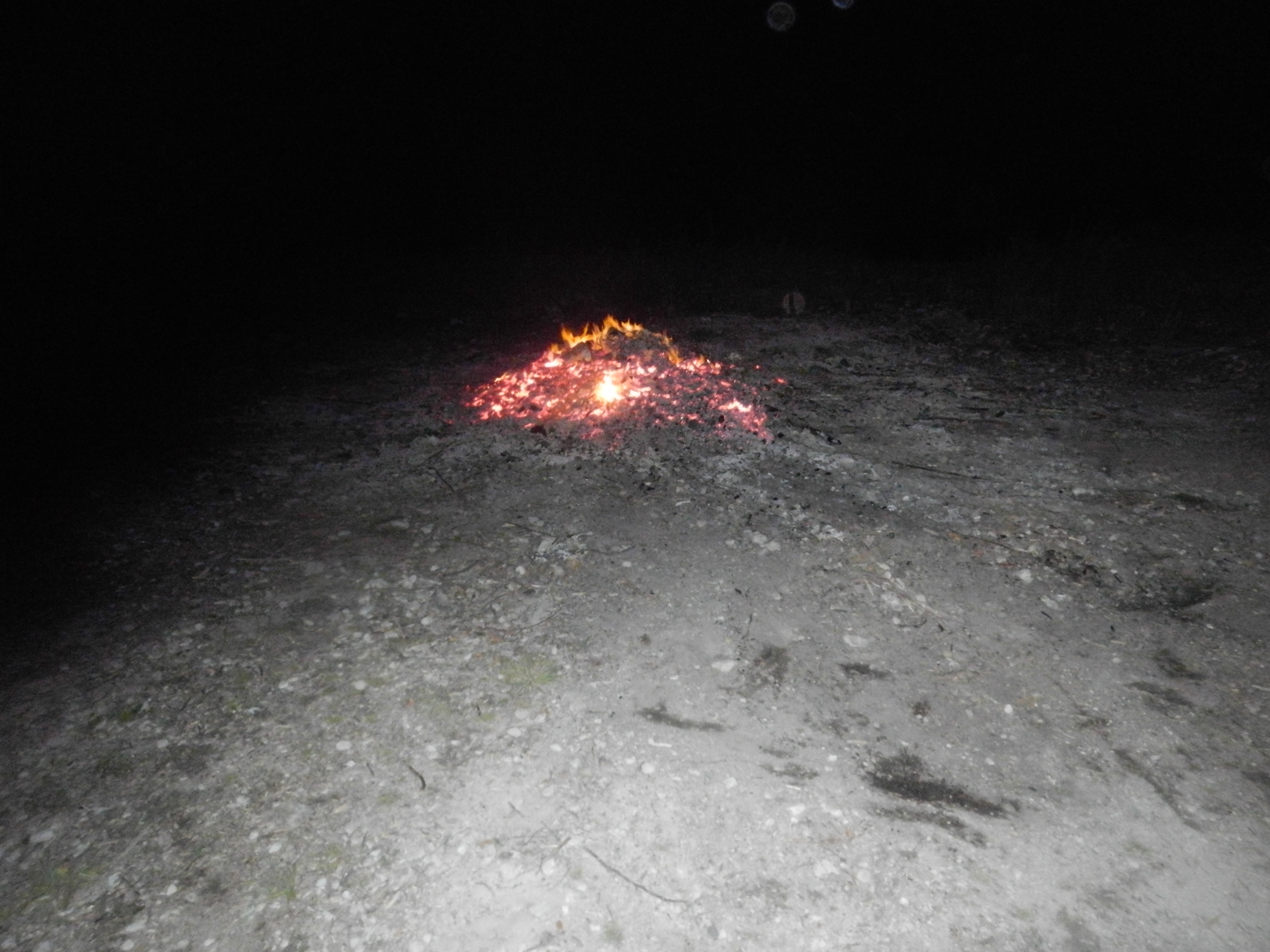 När mörkret föll på var det dags för musik och att tända vårdkasen. En ”riktig” vårdkase bör helst vara 10-20 meter hög för att synas så långt bort som möjligt. Men Anders Thurén och Gustav Appelquist hade snickrat ihop en liten kopia byggd av gamla rivningsbräder som var omkring 3,5 meter hög och fylld invändigt med röjda buskar som bränsle. När klockan var 20.30 var det dags att tända vårdkasen, helt enligt den idé som gäller för Forneldarnas natt. Exakt samtidigt tändes omkring 950 (uppdaterat från 450) eldar runt stora delar av Östersjön. Vårdkasen tog snabbt fart och spred ljus och värme mot åskådarna medan röken sakta singlade ut över havet. Eldskenet från vårdkasen lyste upp natthimlen som en forntida signaleld. Och signalerna tycktes ha nått ut. Skenet från facklorna i kombination med vårdkasen lockade ytterligare åskådare (och brandkåren) till platsen.