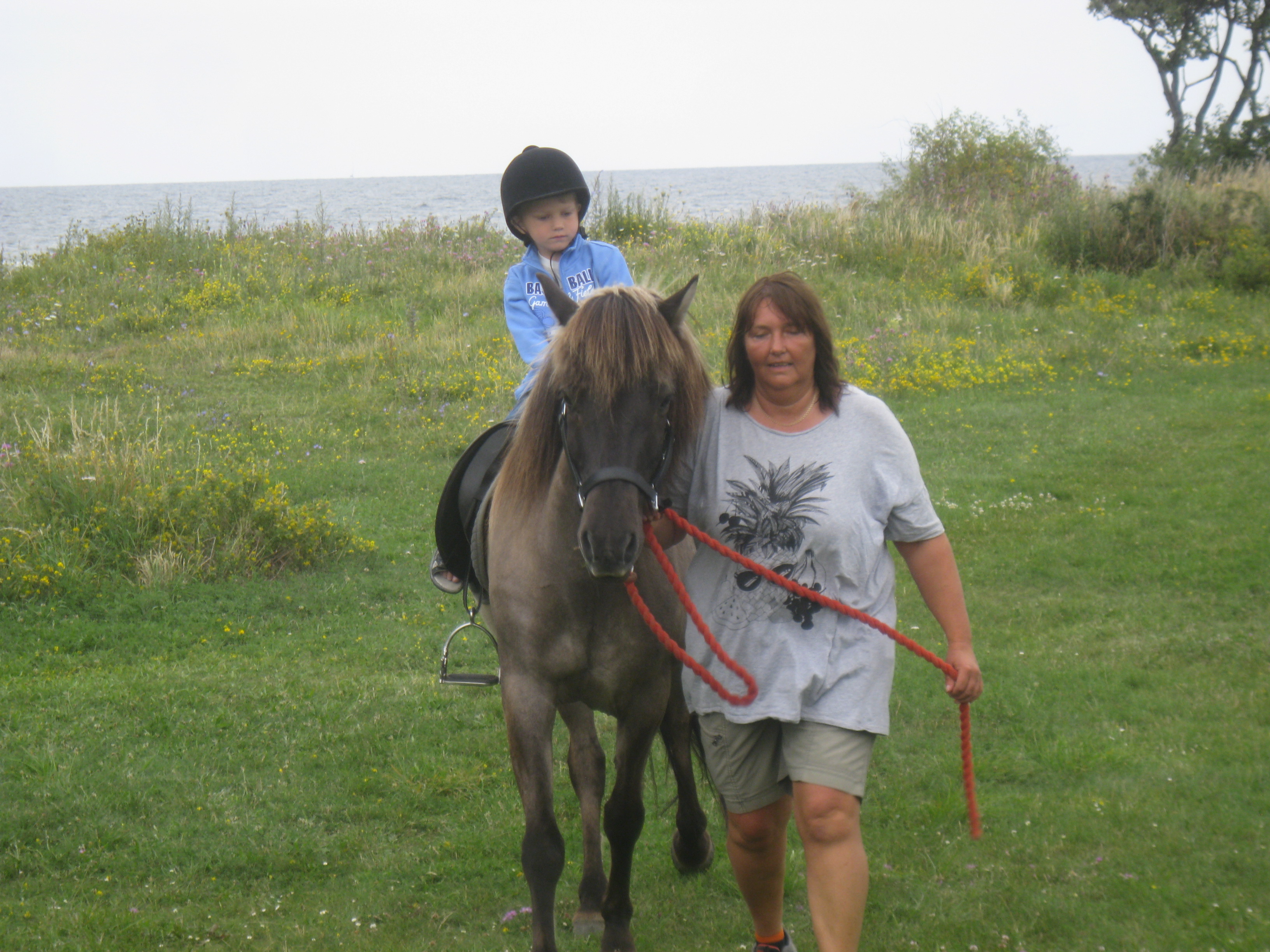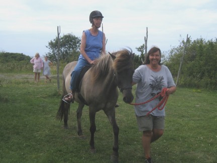 Många besökare hade även lockats av barnridning som ordnats i anslutning till loppisen. Zenita Strandängers vältrimmade islandshästar betar normalt på änget intill hamnen. Nu fick de hjälpa till med att dra in lite bidrag till Austur Islandshästars förening. Det blev många turer med ivriga och nöjda barn. Ett barn var så förtjust i ridningen och vägrade att lämna hästryggen efter turen. Barnen fick efter ett tag konkurrens till hästryggarna. Många vuxna passade på att göra sin första ridtur någonsin.