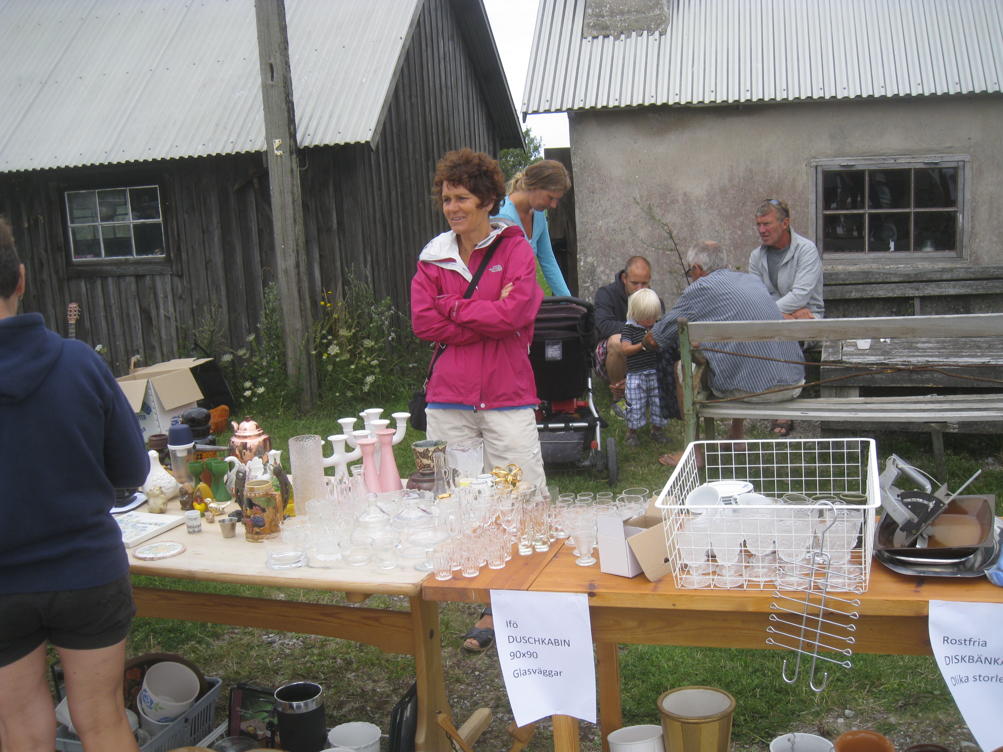 En aldrig sinande kö var det också till det enkla café, som temporärt anordnats i Åsa Nilssons hamnbod. Kaffe med wienerbröd, läsk och korv var viktiga inslag för att hålla kommersen igång. Åsa och Elin Jakobsson bakom cafédisken fick knappast någon lugn stund. Och som sig bör på en loppis. När det närmade sig stängningsdags sjönk alla priser, ja t.o.m. för wienerbröden. Det allmänna omdömet var bland både säljare och köpare att det var en mycket trevlig loppis som absolut tål att upprepas.