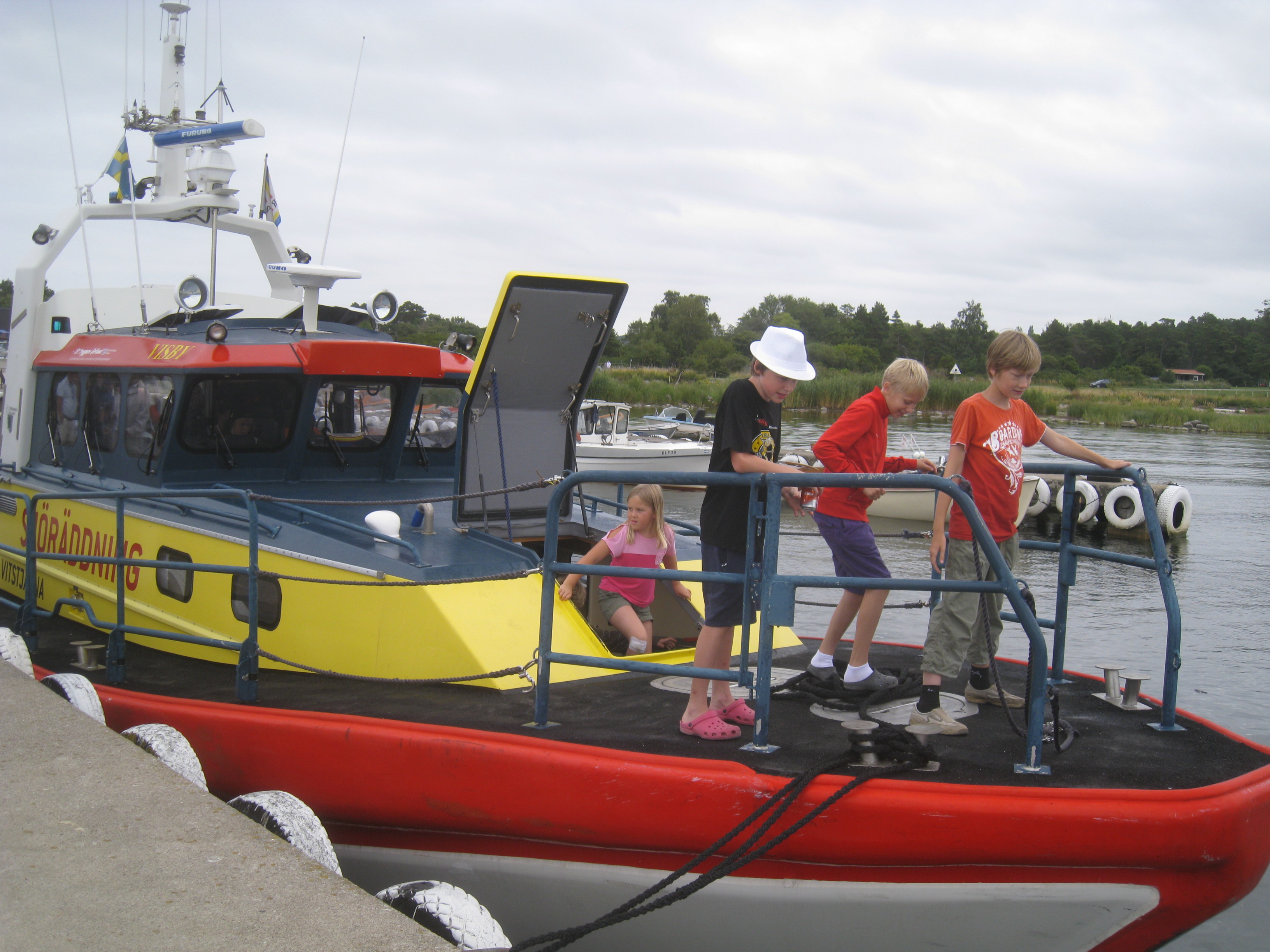 Ett annat inslag i anslutning till loppisen var Sjöräddningens båt som lagt till vid kajen. Sjöräddningen hade tagit tillfället i akt att visa upp sin välutrustade båt för besökarna. En populär åktur ut på havet med den snabba båten lockade många, vilket kunde konstateras av en ständig kö vid kajen.
