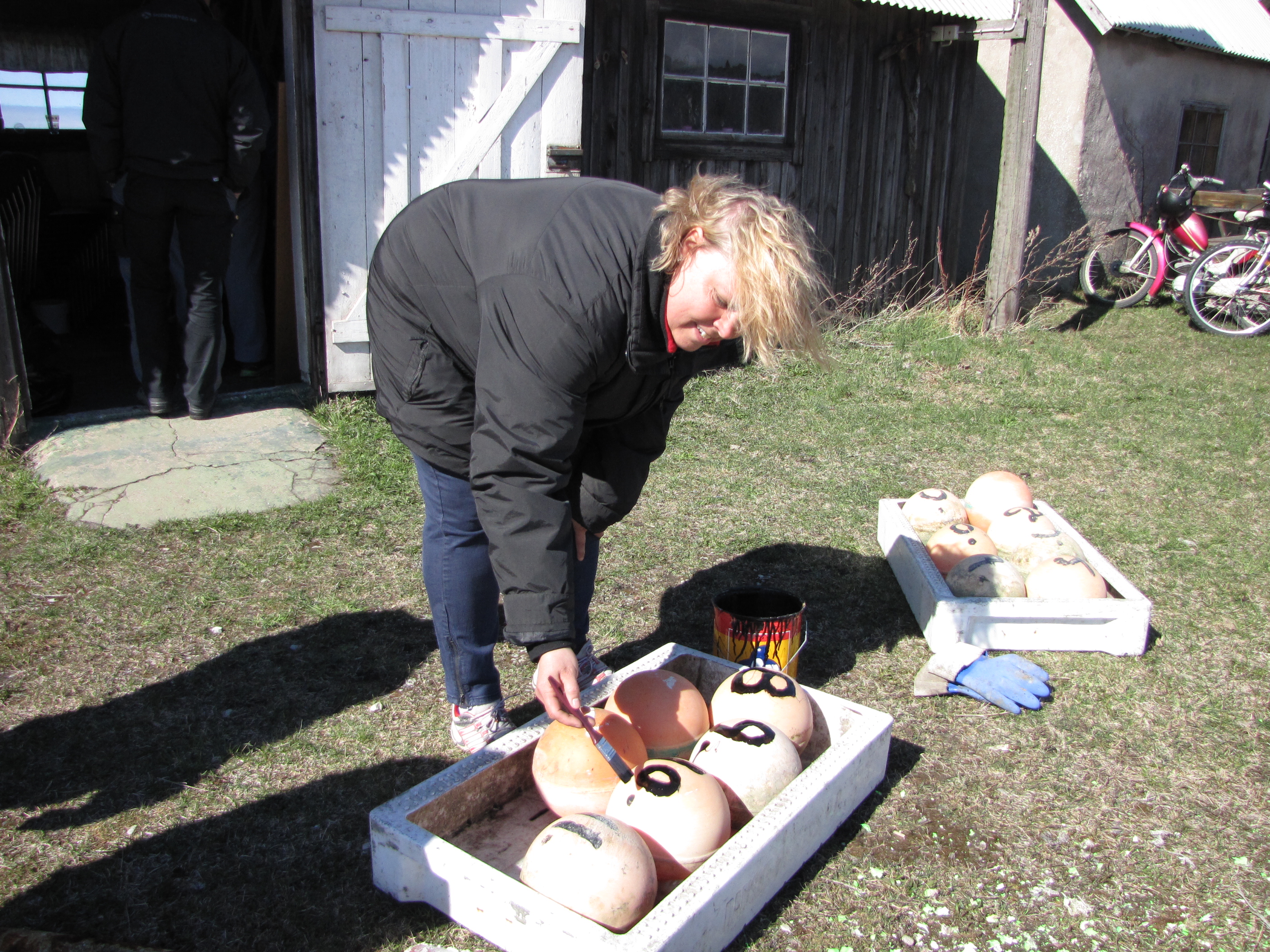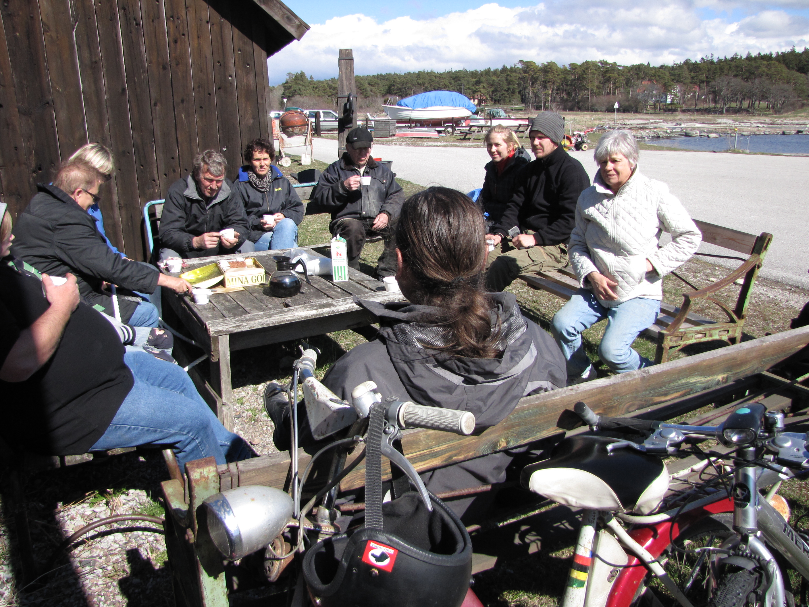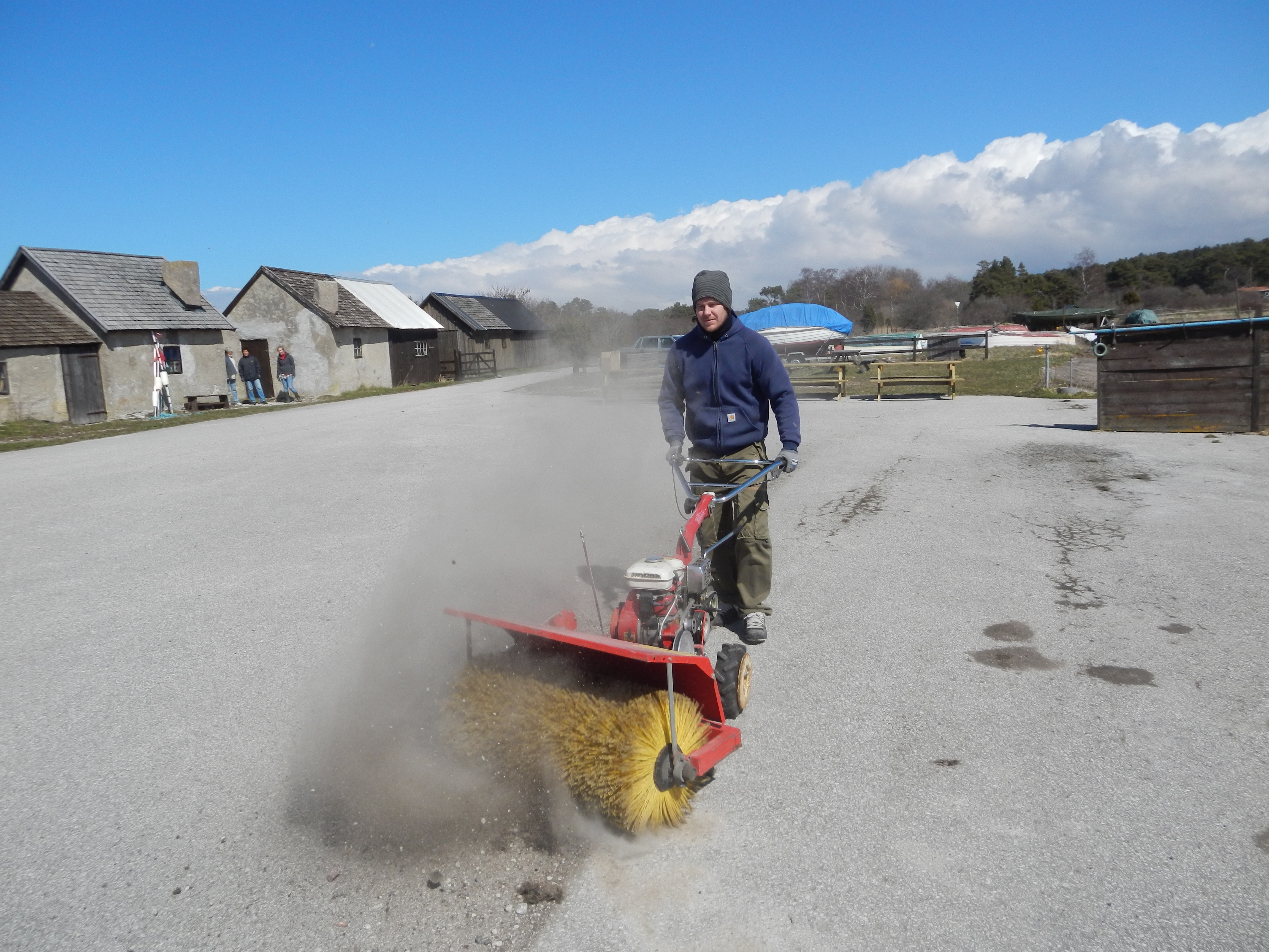 Varefter tiden fortgick blev vädret allt bättre och eftermiddagskaffet kunde avnjutas utomhus utanför Yvonnas bod. Efter kaffet återstod en hel del jobb och först framåt 5- tiden kunde städtruppen börja dra sig hemåt.