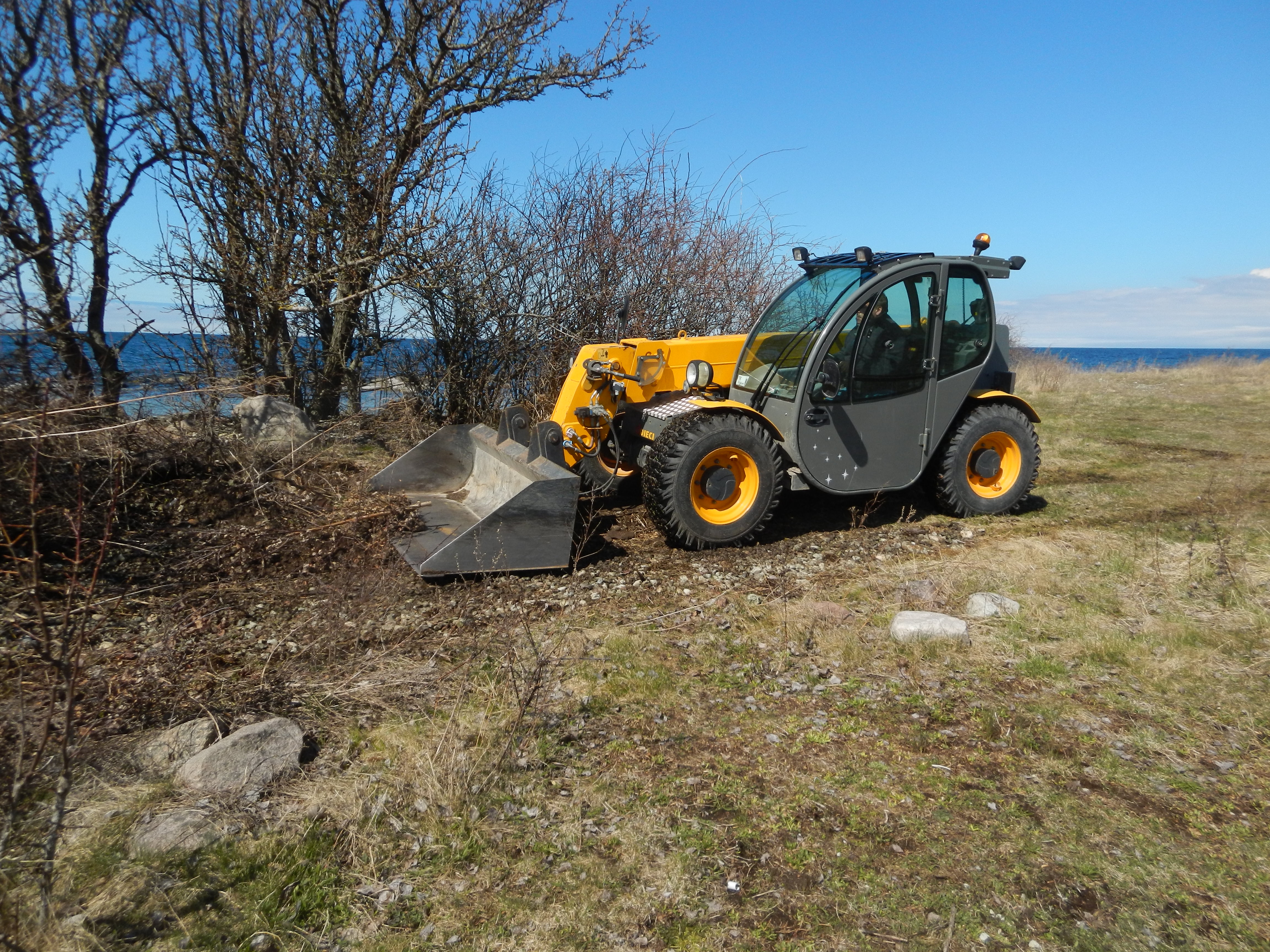 Sagt och gjort, Patriks nyligen införskaffade grävare visade sig effektiv för detta arbete och framåt sena eftermiddagen hade ett större område befriats från taggbuskar, enar och ett antal glasflaskor.