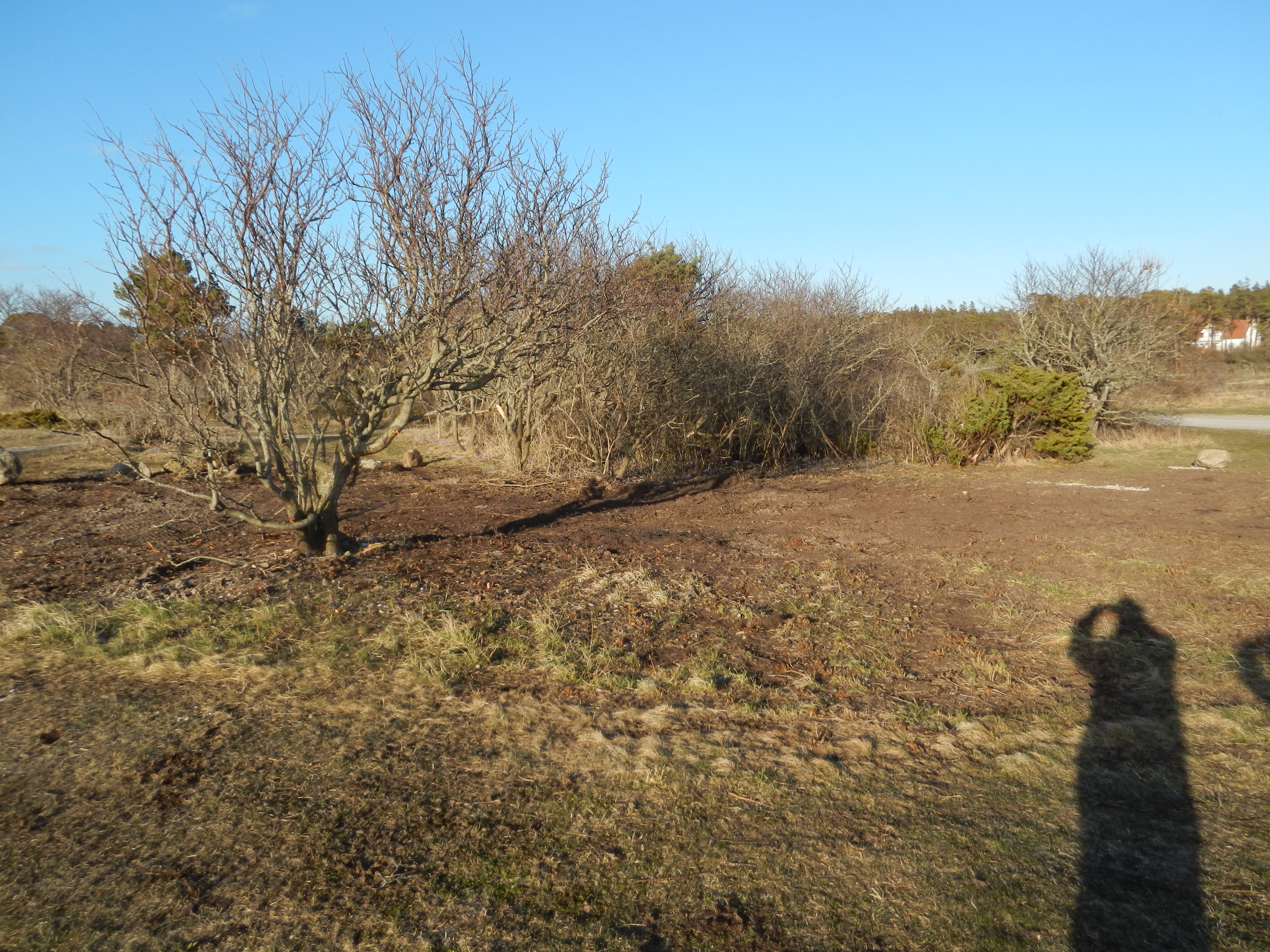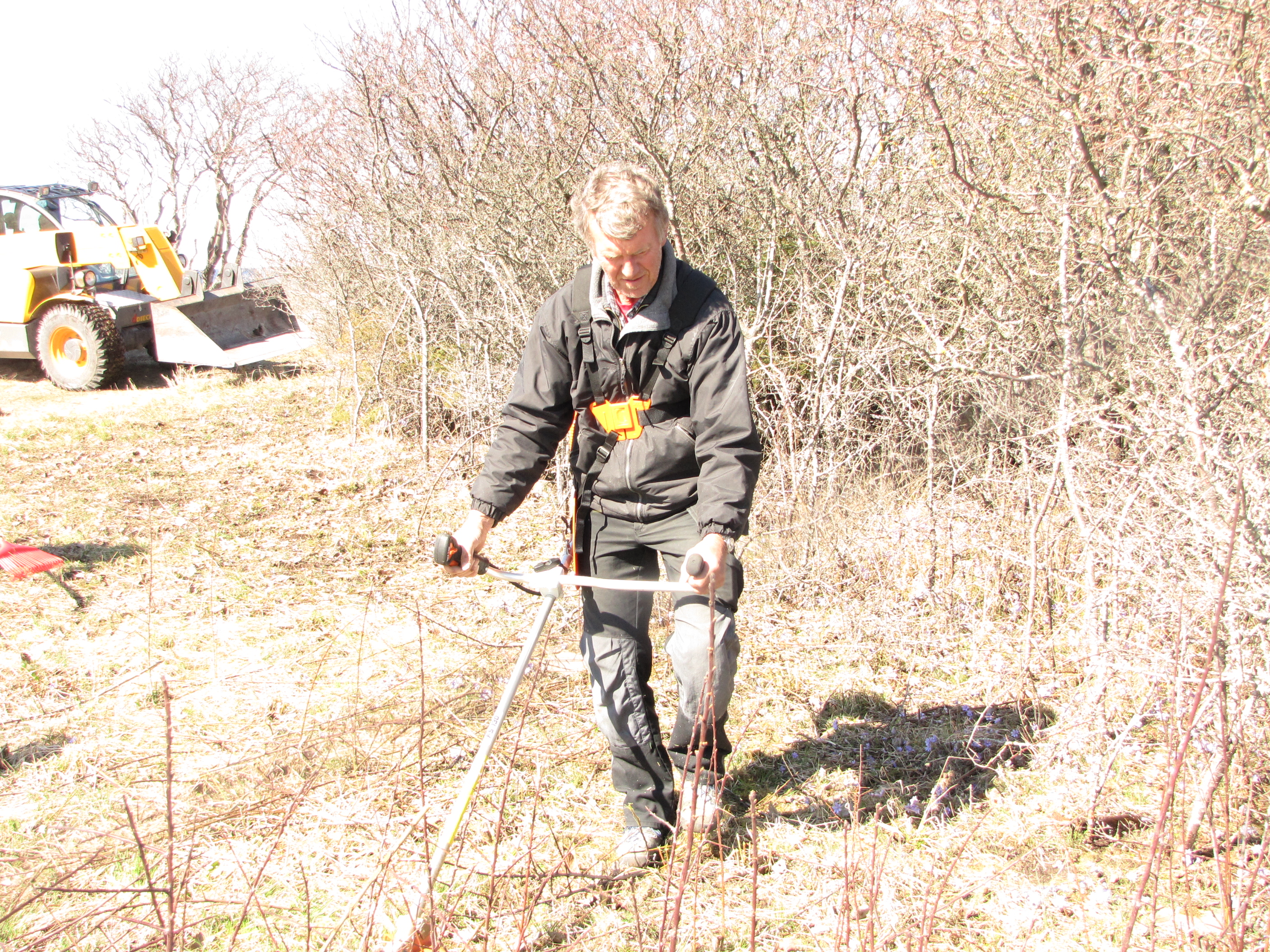 Det område bakom bodarna som röjdes från buskar förra året behövde röjas på nytt och helst skulle ytterligare snår tas bort så att hela den gamla garngården kunde friläggas.