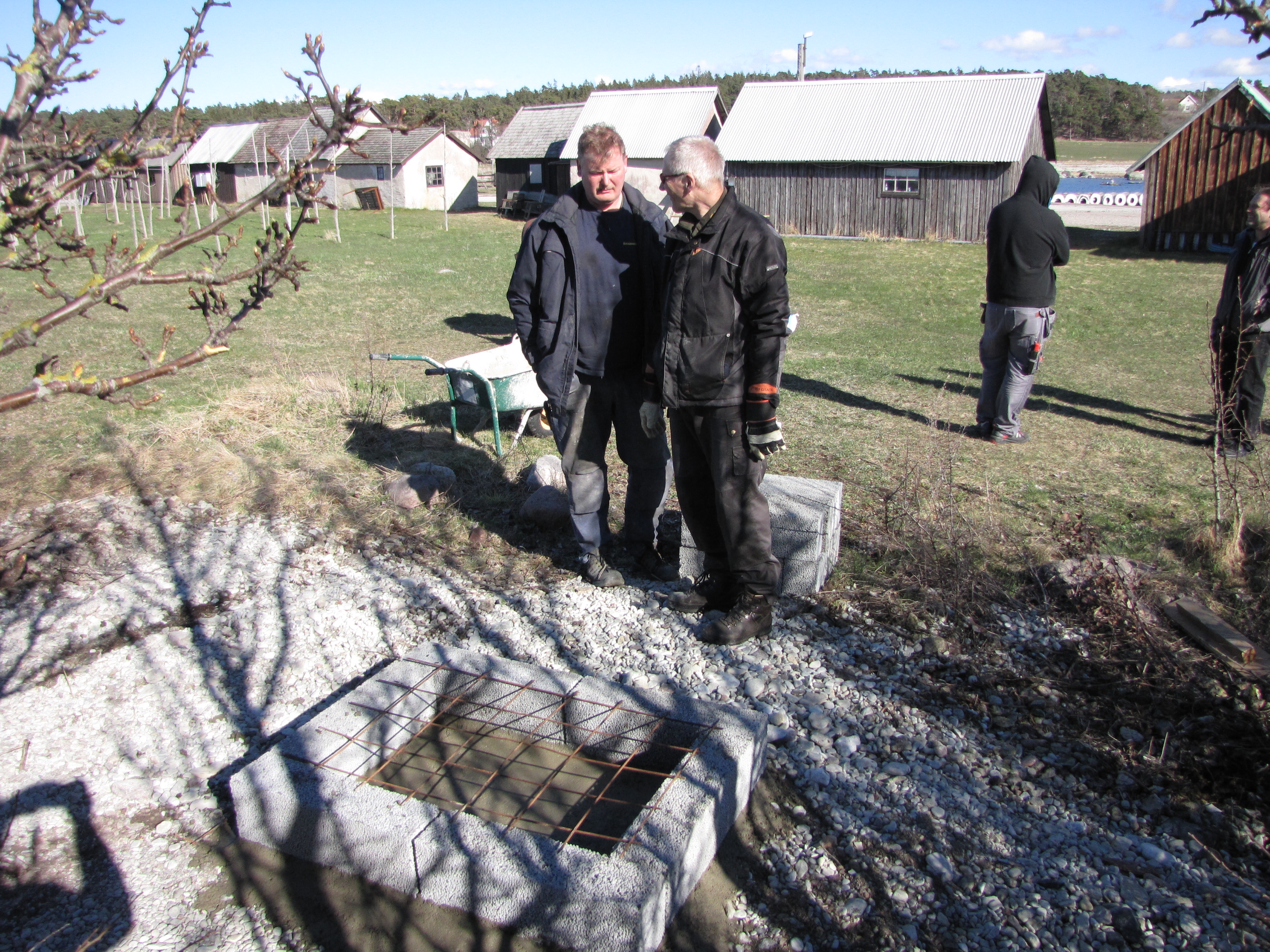 Tidigare fanns en fiskrök (fast jag tror det var ett garnfärgeri, författ. anm.) bakom bodarna men den revs eftersom den då var fallfärdig. Nu var det dags att låta den återuppstå. Under dagen grundlades fundamenten för den blivande fiskröken.