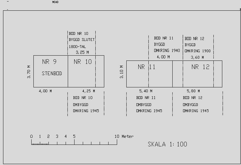 Bod nr 11 är byggd i trä. På uppmätningen från 1943 betecknas den som bod nr 12 och från uppmätningen 1960 betecknades den med nr 13.