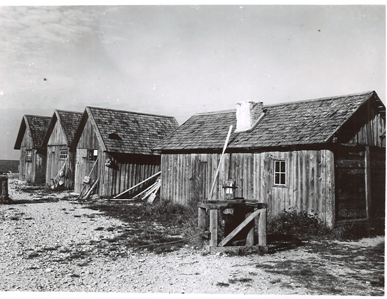 När bodarna 1-3 uppfördes omkring 1930 byggdes de väldigt lika varandra och med samma mått, ungefär 3×4 meter, vilket framgår av fotot nedan. Alla hade då spåntak.