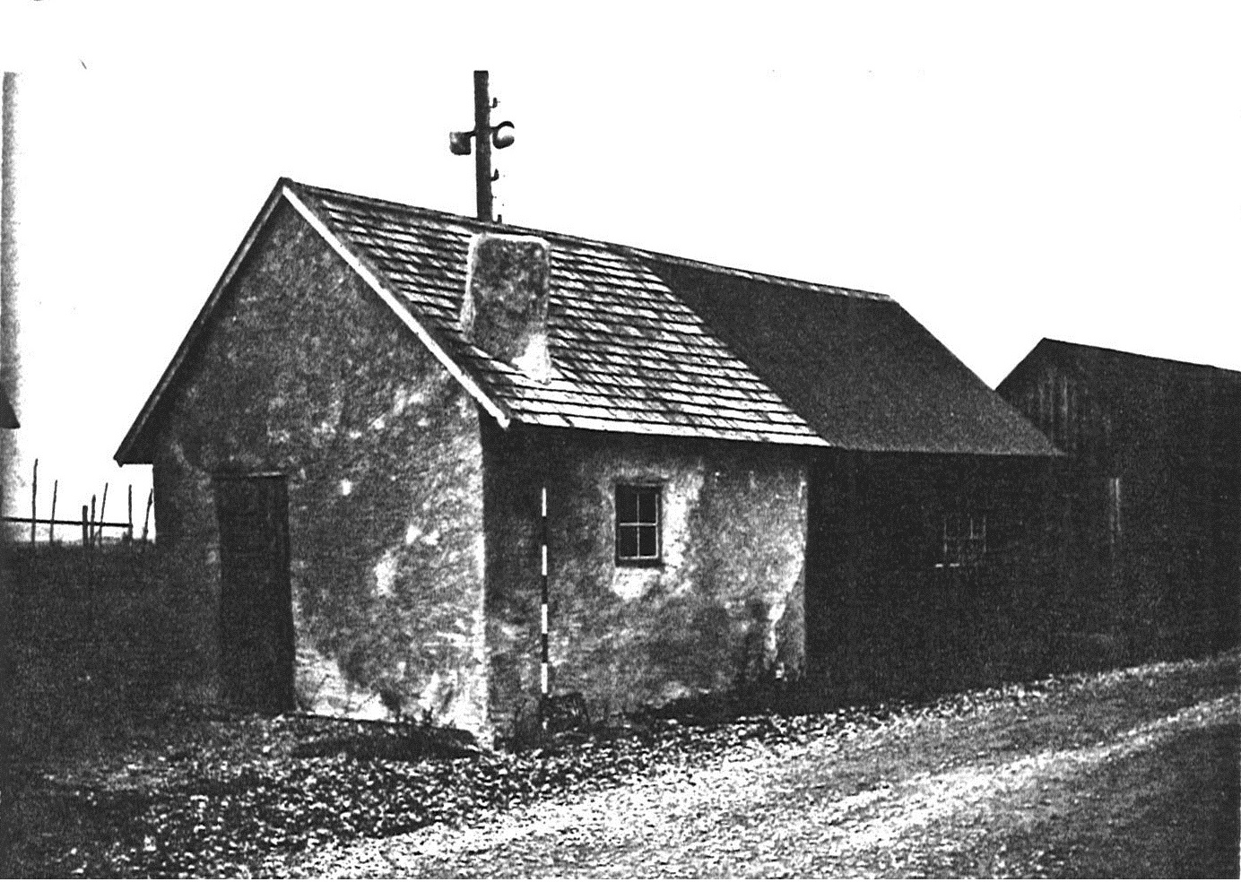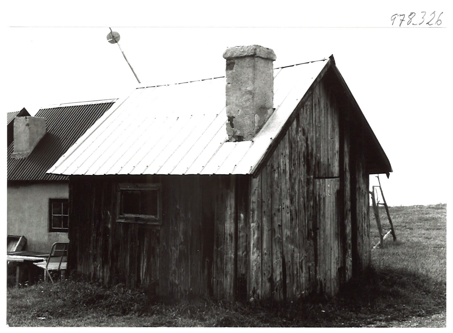 Inventering gjord 1973. Mått 3,30 x 3,70. Trähus av stolpverk direkt på marken Fasad av stående glesa bräder. Tak av pannplåt Putsad skorsten.